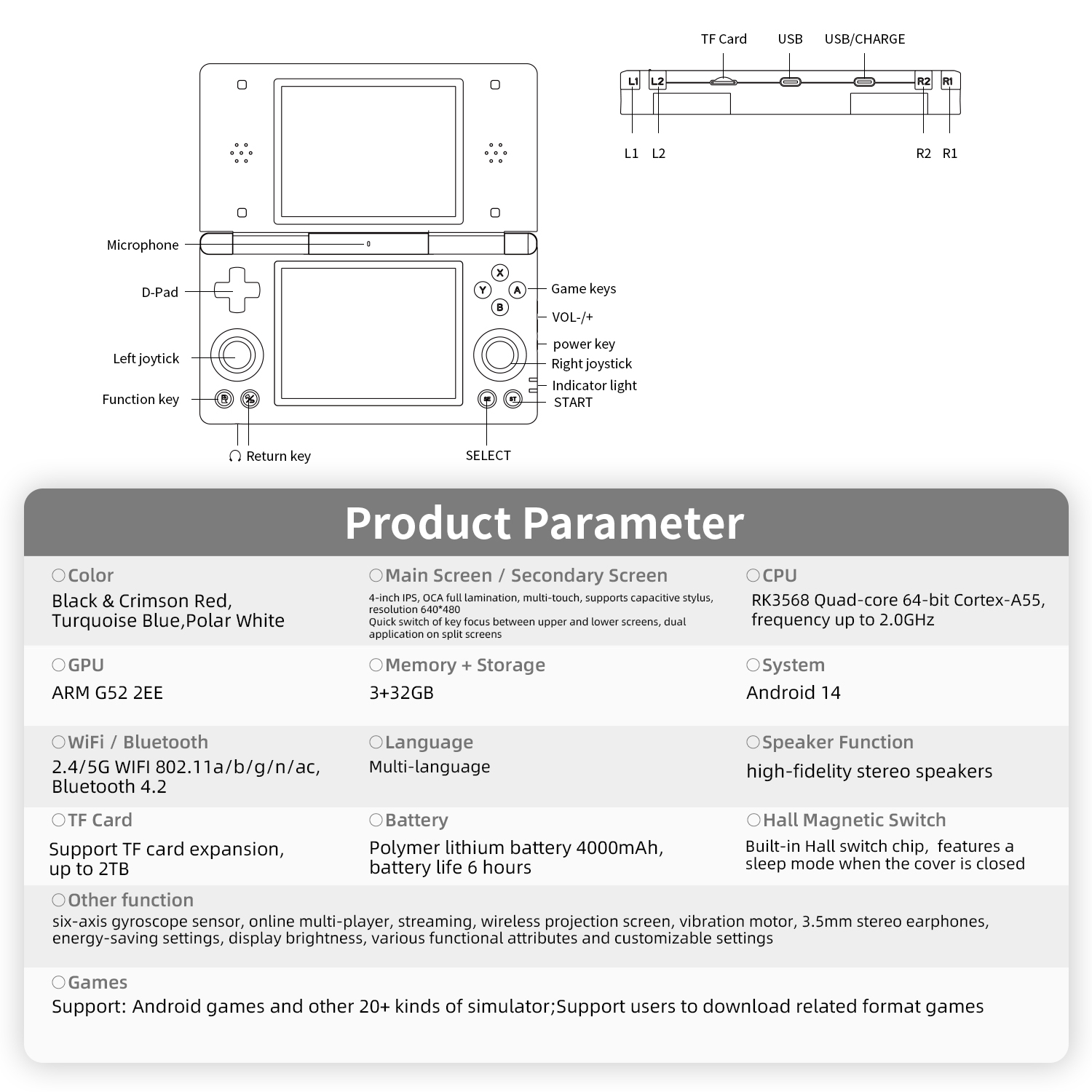 ANBERNIC RG DS Dual-Screen Game Console 4-inch IPS Android 14 RK3568 Quad-core 64-bit | GameCove PH