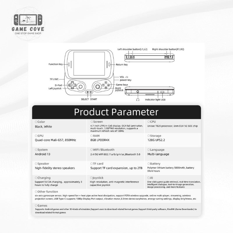 ⤷Accessories: Type-C charging cable, color box, user manual, screen protector, joystick cap
