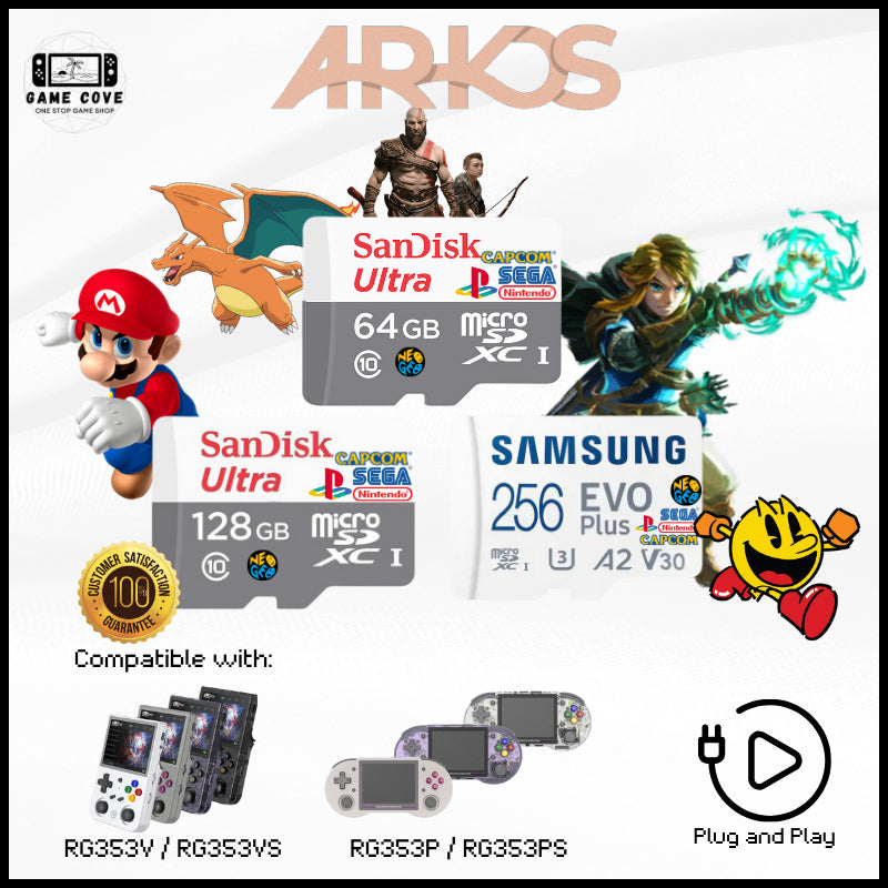 Boost your gaming experience with Anbernic's SD Card! Comes with two top-quality San Disk and Samsung brand SD cards, with options of 16GB+64GB, 16GB+128GB, or 16GB+256GB. This custom OS includes a theme switcher, fully packed BIOS files, and over 100 additional PS1 and PSP games such as Silent Hill, CTR, and Xenogears. Upgrade your RG353 device now!