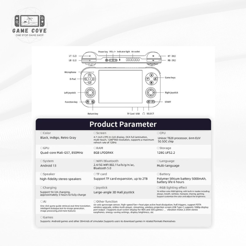 ⤷Other function: six-axis gyroscope sensor, high-speed fan + heat pipe active heat dissipation, hall triggers, support FOTA wireless upgrade, online multi-player, streaming, wireless projection screen,USB Type-C supports 1080p display port outputļ¼Supports dual-screen display for NDS and 3DS gamesļ¼ļ¼ vibration motor,3.5mm stereo earphones, energy-saving settings, display brightness, etc.