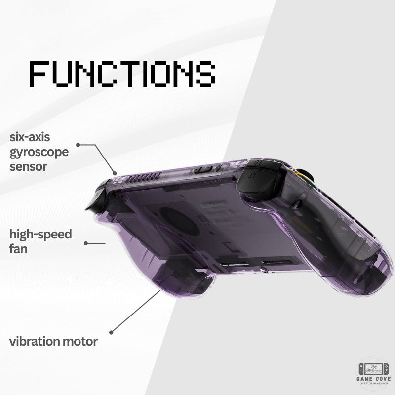 ⤷Other function: Built-in six-axis gyroscope sensor, hall triggers, high-speed fan + heat pipe active cooling. Supports FOTA wireless upgrades, online multiplayer, streaming, wireless screen projection, USB Type-C supports 1080p display port output, vibration motor, supports 3.5mm stereo audio headphones, energy-saving settings, RGB joystick light control, display brightness, various functional attributes and customizable settings.