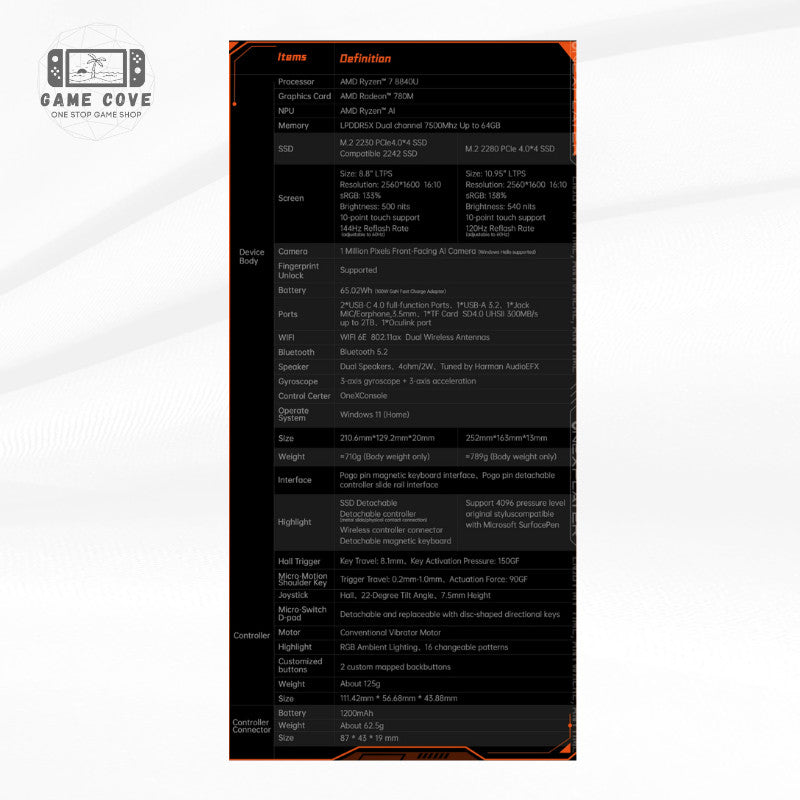 Onexplayer X1 Mini 8.8 Inch LTPS Touch Screen 3 IN 1PC Game Console | GameCove PH